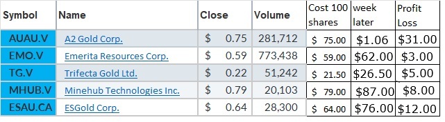 Trifecta Gold Ltd (TG) Went up 5 cents. That is a 23% increase. They have more than one good project.
